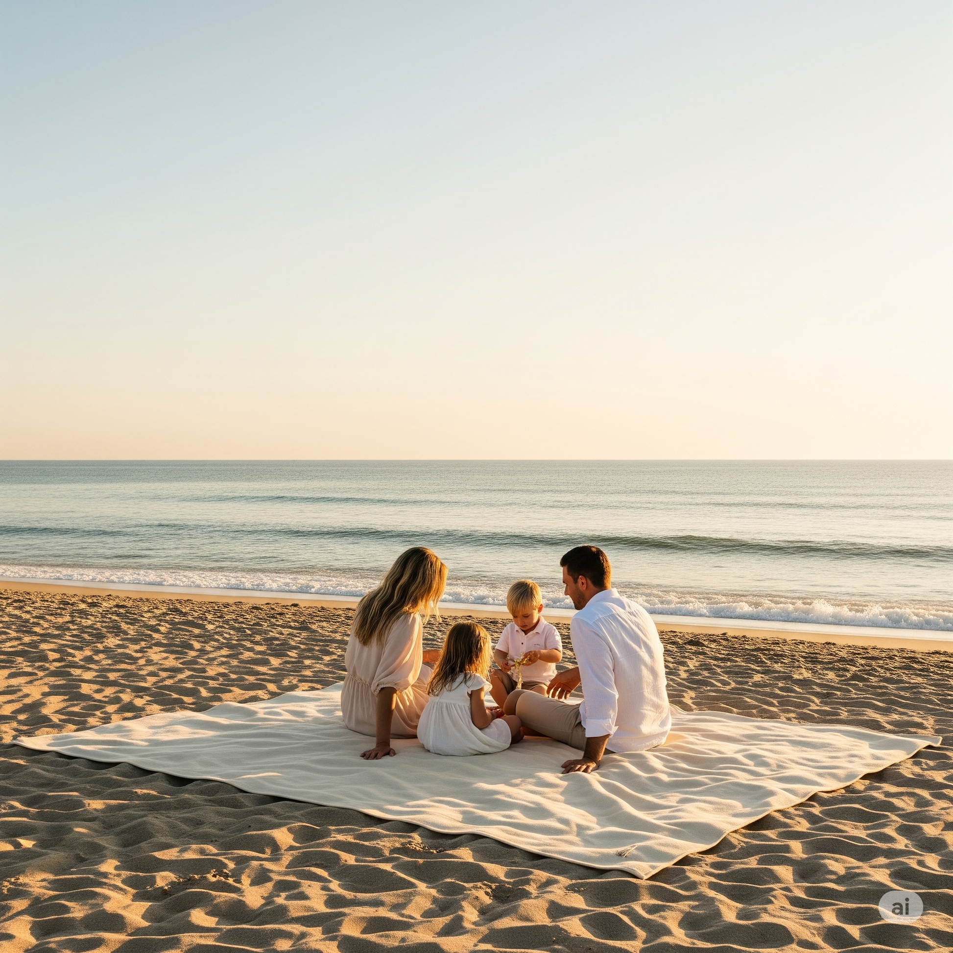 Woven from a luxurious blend of organic cotton and natural linen, its texture is soft, breathable, and kind to even the most sensitive skin — perfect for sun-soaked days, seaside naps, and slow moments of togetherness.